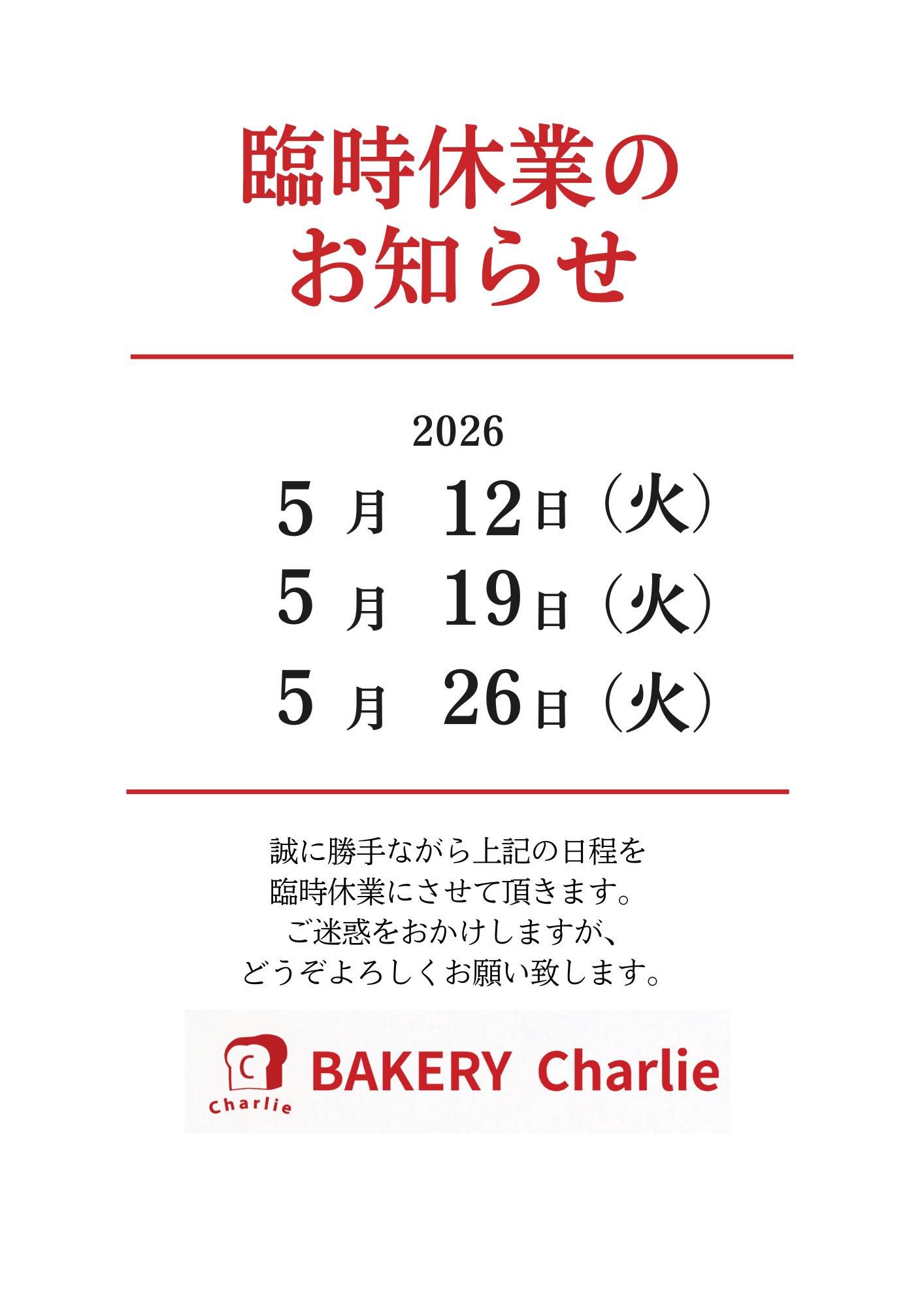5月 臨時休業のお知らせ